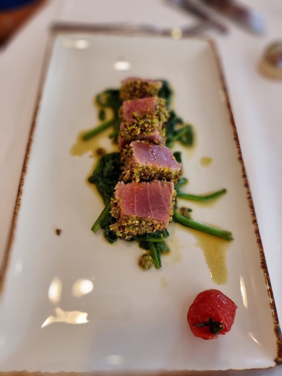 Cibo ottimo, dagli antipasti ai contorni, da provare i loro fiori di zucca farciti di ricotta, acciughe e capperi, nonché i ravioli di pesce e le linguine all'astice, molto ricche. Pesce freschissimo e ben cucinato, ampia scelta di vini, anche a calice, e dolci squisiti per chiudere in bellezza, in particolare la mille foglie. Ciliegina sulla torta: personale altamente preparato, gentile, premurosa e molto attento al cliente.