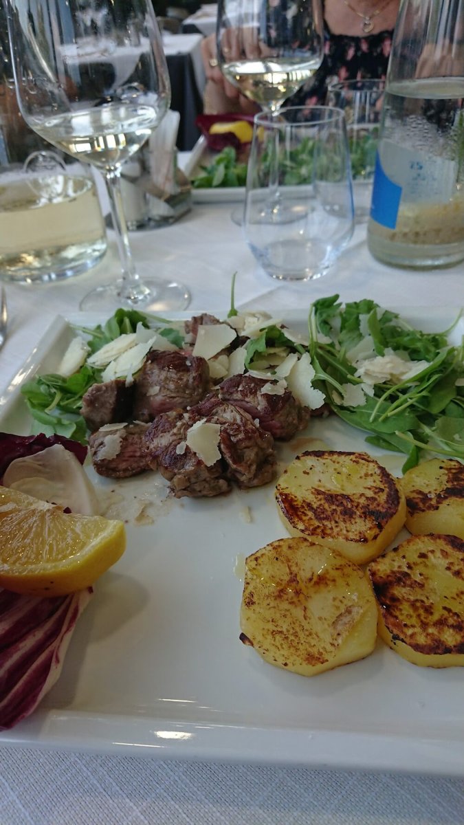 Cibo buonissimo, pizza e fritti misti favolosi, il tutto accompagnato da un buon vino bianco: Passerina biologico, consigliatissimo con il pesce.